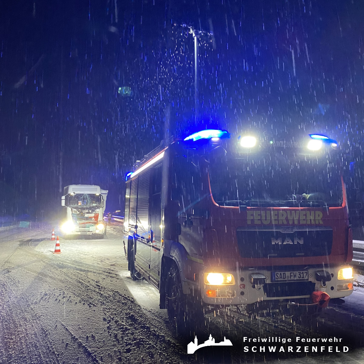 Am frühen Freitagmorgen wurden wir mit den Feuerwehren Schwandorf und Fronberg zu einem Verkehrsunfall mit LKW auf die A93 in Fahrtrichtung Regensburg alarmiert.