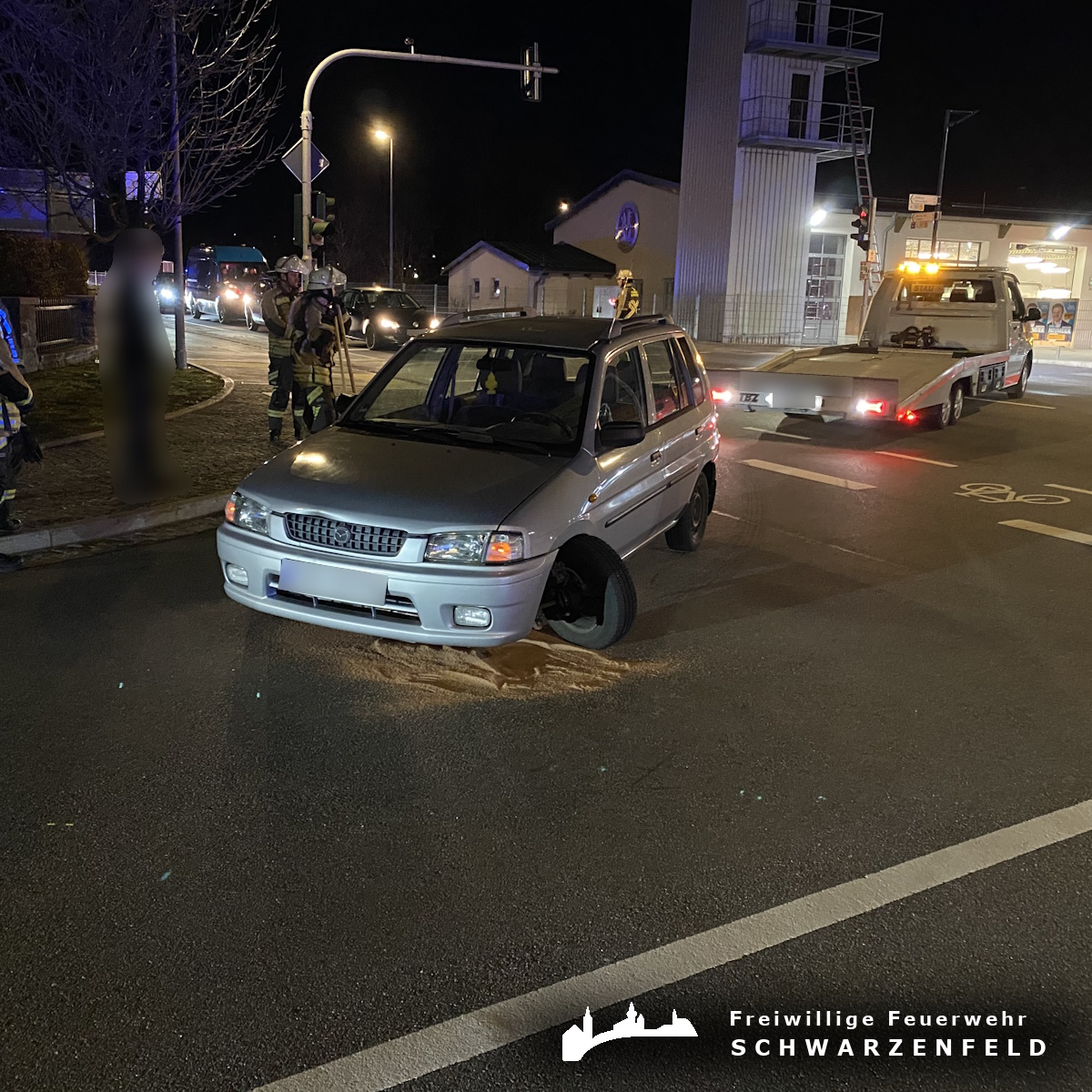 Eingesetzte Kräfte: FF Schwarzenfeld, HvO JUH Schwarzenfeld, Polizei, Abschleppunternehmen