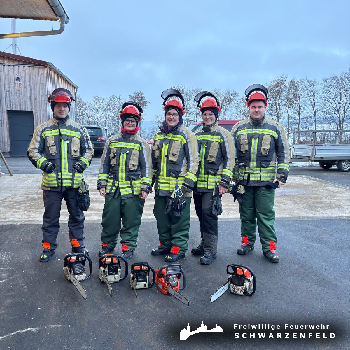 Zusammen mit weiteren Feuerwehren haben fünf Aktive unserer Wehr erfolgreich an einem zweitägigen Lehrgang für Bediener von Motorsägen in Trausnitz teilgenommen.