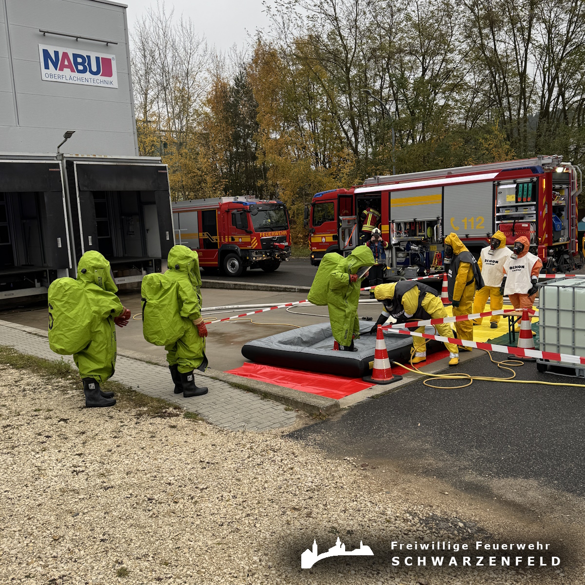 Samstagnachmittag wurden wir mit den Feuerwehren Stulln und Nabburg zu einer Einsatzübung in den Industriepark Stulln zur Firma NABU-Oberflächentechnik GmbH gerufen. Aufgrund der Menge der in der Produktion und im Lager vorhandenen Chemikalien, unterliegt der Betrieb den Vorgaben der Störfallverordnung, weshalb in regelmäßigen Abständen Übungen durchgeführt werden.
