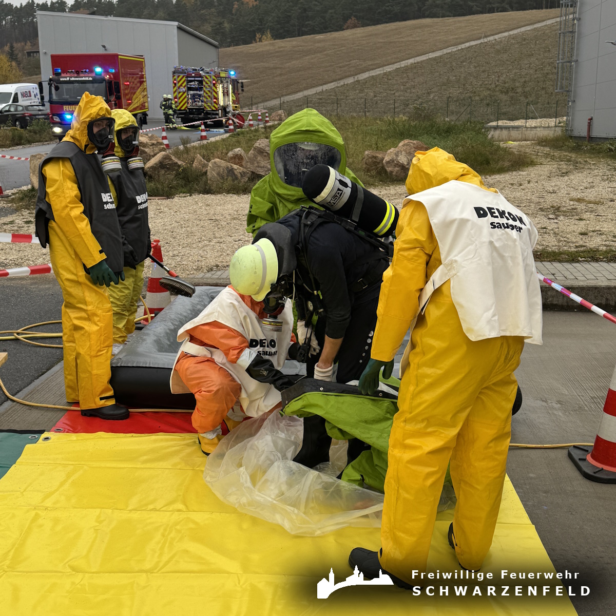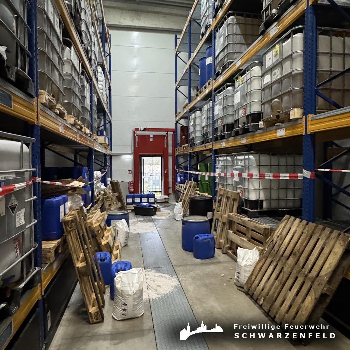 Angenommen wurde ein Gefahrstoffaustritt aus mehreren Behältnissen nach einem Regaleinsturz im Lagerbereich. Zugleich diente die Übung als Premiere für den neu gegründeten Gefahrgutzug-Nord des Landkreises Schwandorf, bestehend aus den an der Übung beteiligten Feuerwehren.