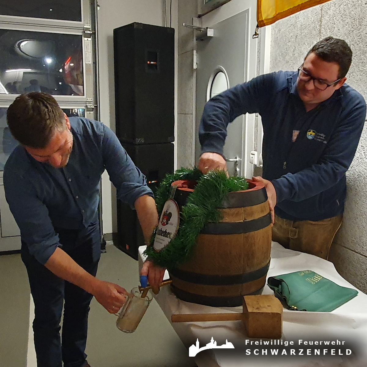 Am Samstag fand wieder unser traditionelles Starkbierfest statt. Mit dem Anstich des ersten Fasses durch Bürgermeister Peter Neumeier, unterstützt von Vorstand Enrico Schüller und Kommandant Christian Sander, war das Fest offiziell und feierlich eröffnet. Danach konnten sich die Besucher bei guter Stimmung in der gemütlich hergerichteten Fahrzeughalle und Musik von DJ Iceman das süffige Naabecker Bockbier und viele verschiedene deftige Brotzeiten schmecken lassen. Zur späteren Stunde lud dann die Bar ein. So konnte man bei Cocktails und anderen hochprozentigen Getränken den Abend ausklingen lassen.