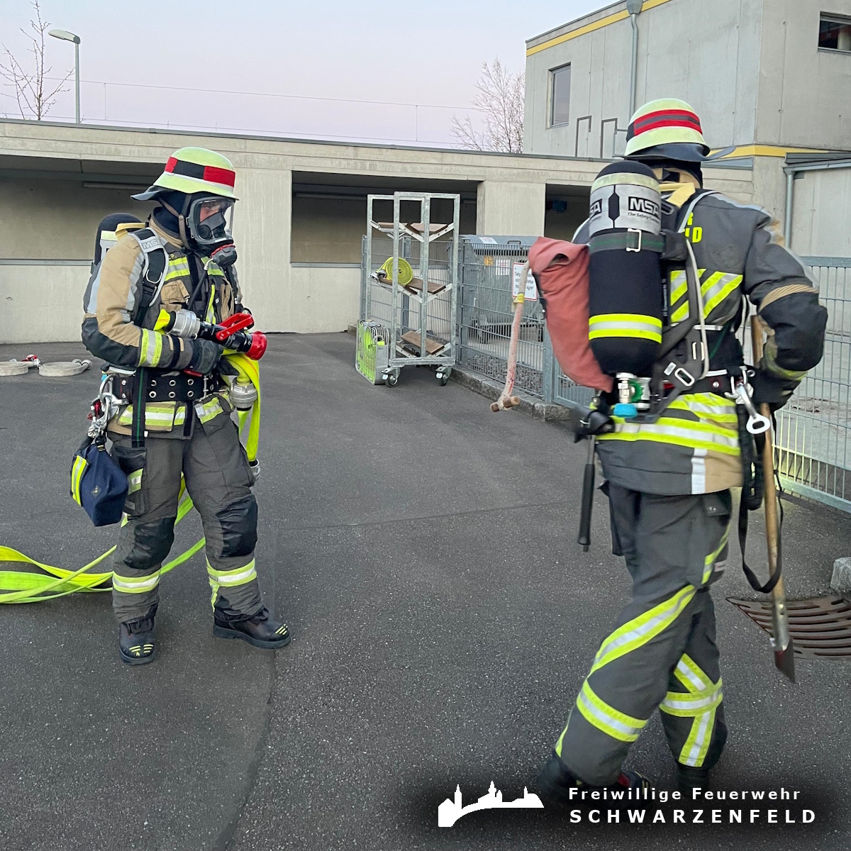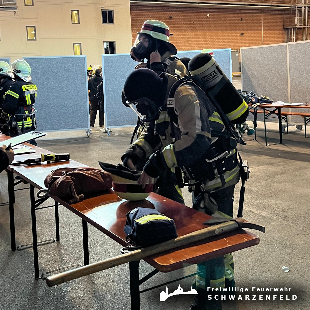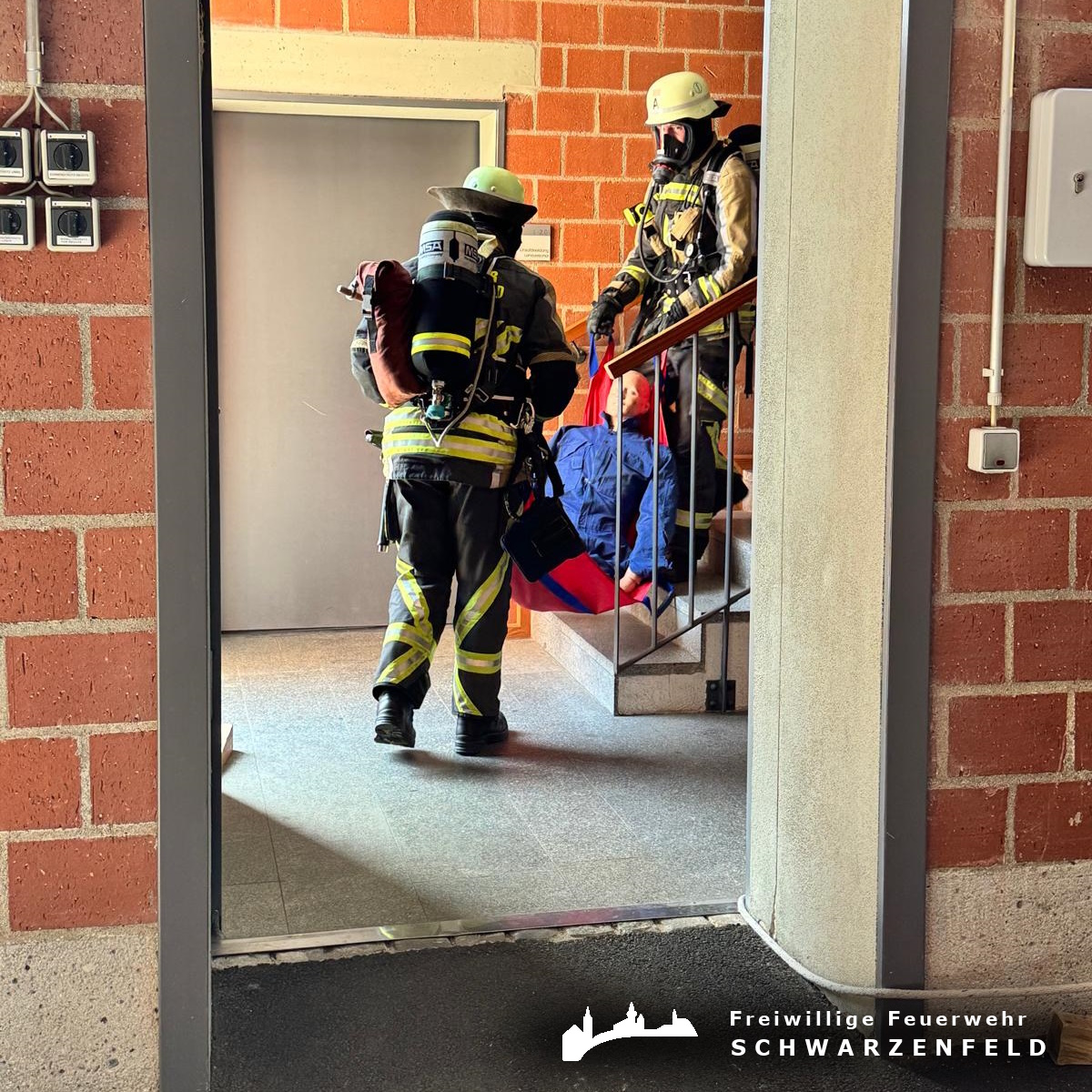 Im Rahmen des Wettbewerbs galt es, verschiedene praxisnahe Truppaufgaben unter Zeitvorgabe zu bewältigen. Dazu zählten unter anderem das korrekte An- und Ablegen der Atemschutzausrüstung, die Durchführung einer Personenrettung sowie ein simulierter Innenangriff über ein Treppenhaus.