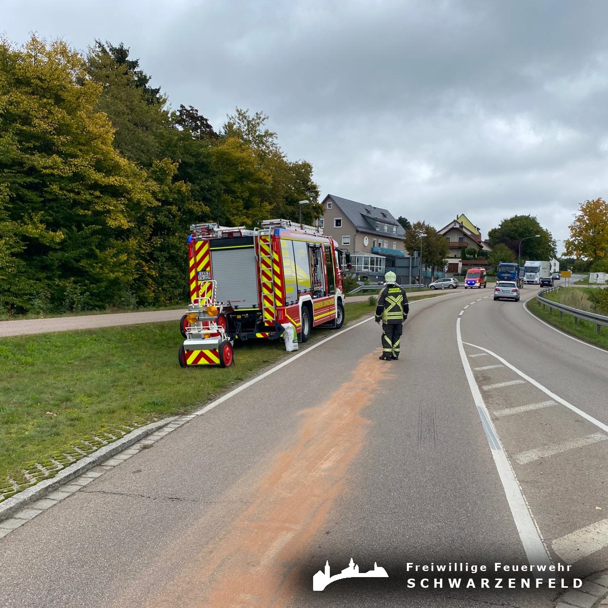 Das HLF konnte zeitnah wieder abrücken und bei der Abarbeitung der Dieselspur in Schwarzenfeld unterstützen.