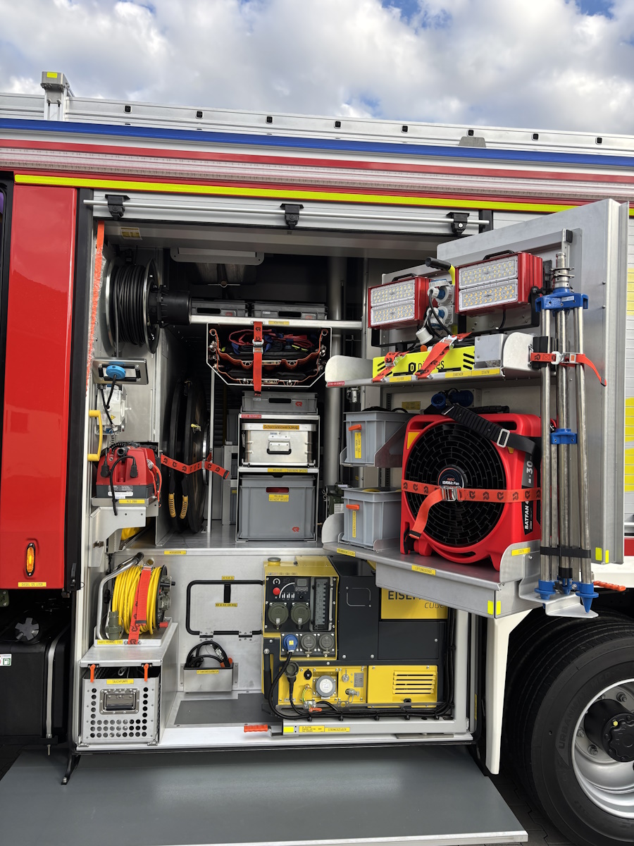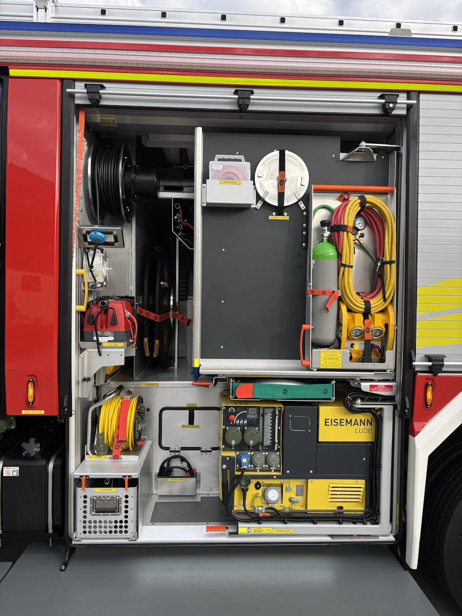 Auch ein Einsatz als Einsatzleitwagen ist möglich. Dazu befinden sich im Mannschaftsraum des Fahrzeuges ein Funkgerät sowie ein Tisch mit Kartenmaterial.